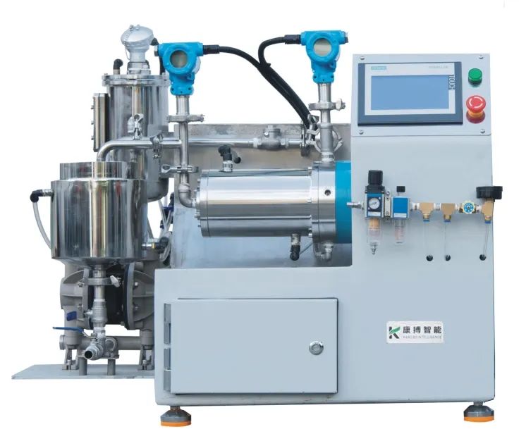 康搏&汇京智能砂磨机是一种高效的研磨设备,广泛应用于各种物料的研磨和加工及需要磨制和分散颗粒的行业,在改善产品质量、调整产品性能和提升制造效率方面发挥重要作用。具体应用范围根据不同行业的需求和研磨目标而定。它的研磨腔非常狭窄,拨杆间隙小,配合高性能的冷却系统和自动控制系统,可以连续加工物料并连续出料,极大提高了生产效率。砂磨机的物料适应性广,是目前物料适应性最广、最为先进、效率最高的研磨设